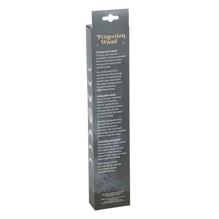 Shield and ground your energy with this protection magic wand. Completed with a genuine black obsidian crystal to absorb negative energy and promote mental clarity, it features a beautiful magic wand design, perfect for energy work and intention setting. Packaged with a storage pouch in a box ready for gifting.